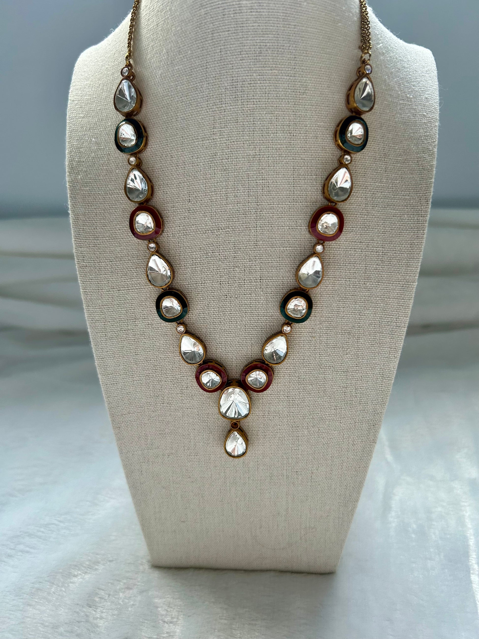 Green & Red Uncut Kundan Necklace Set