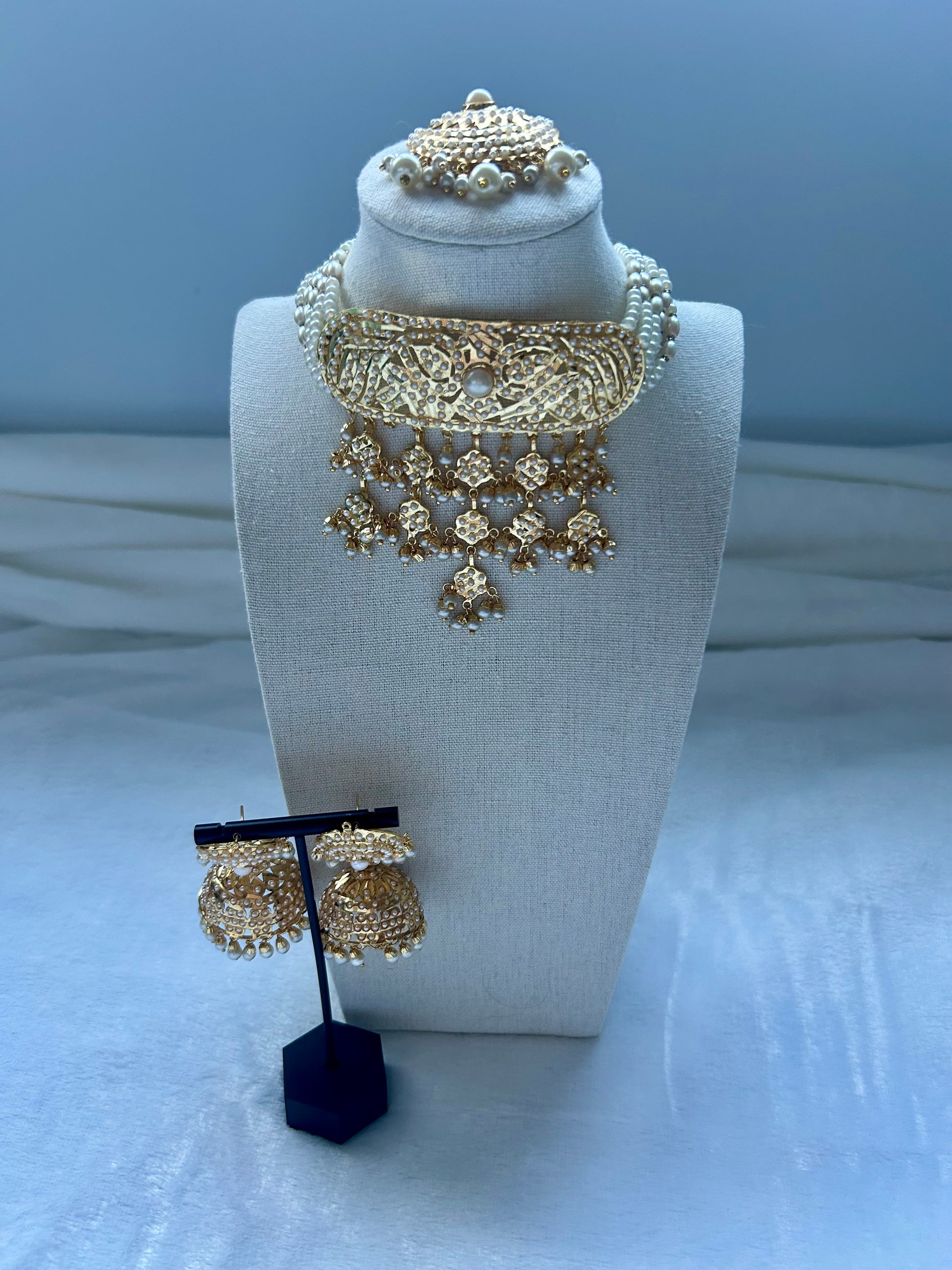 Package Content: 1 Pair Of Earrings x 1 Necklace x 1 Tikka