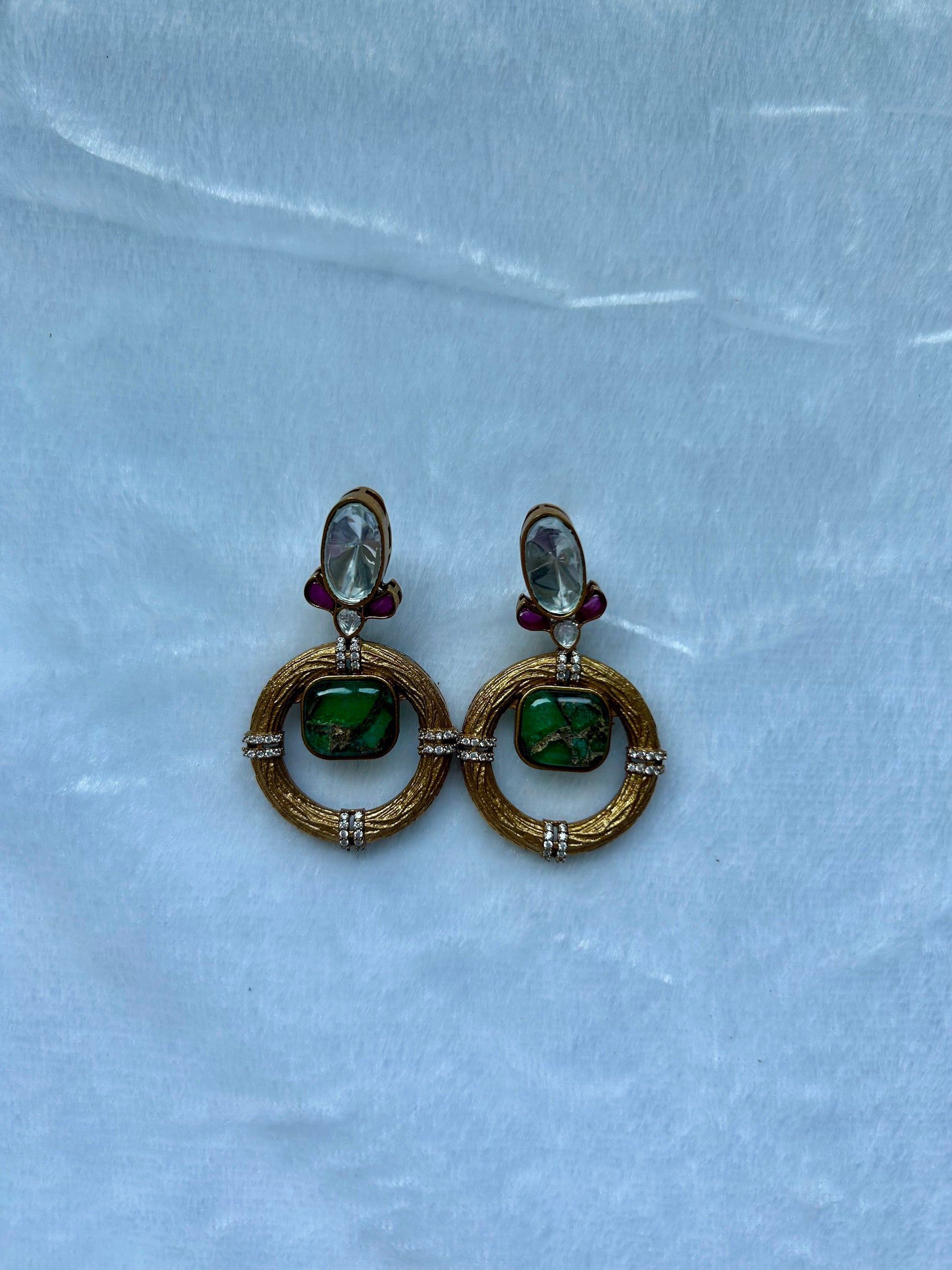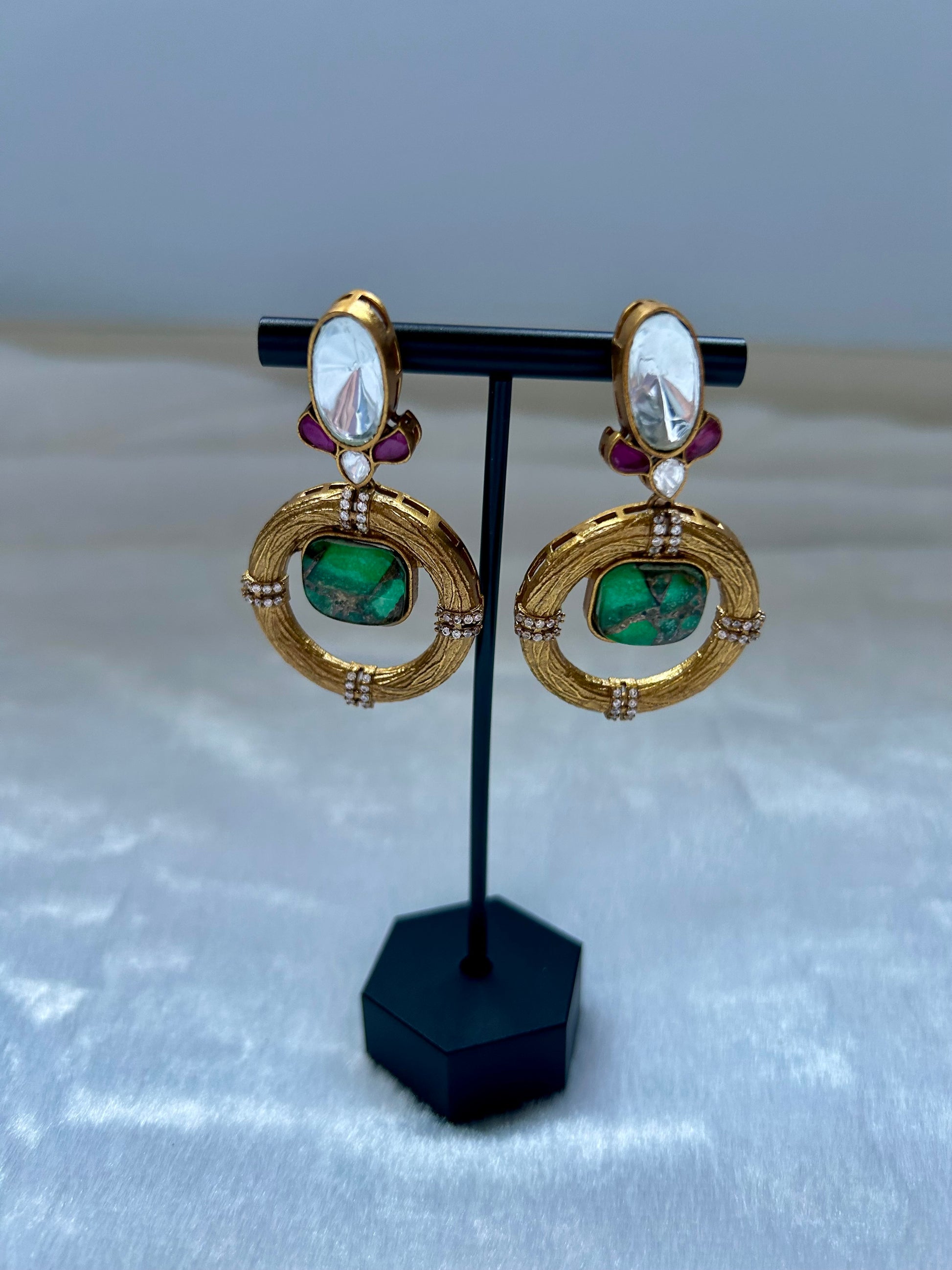 Emerald Green/Teal Marble Uncut Kundan Earrings