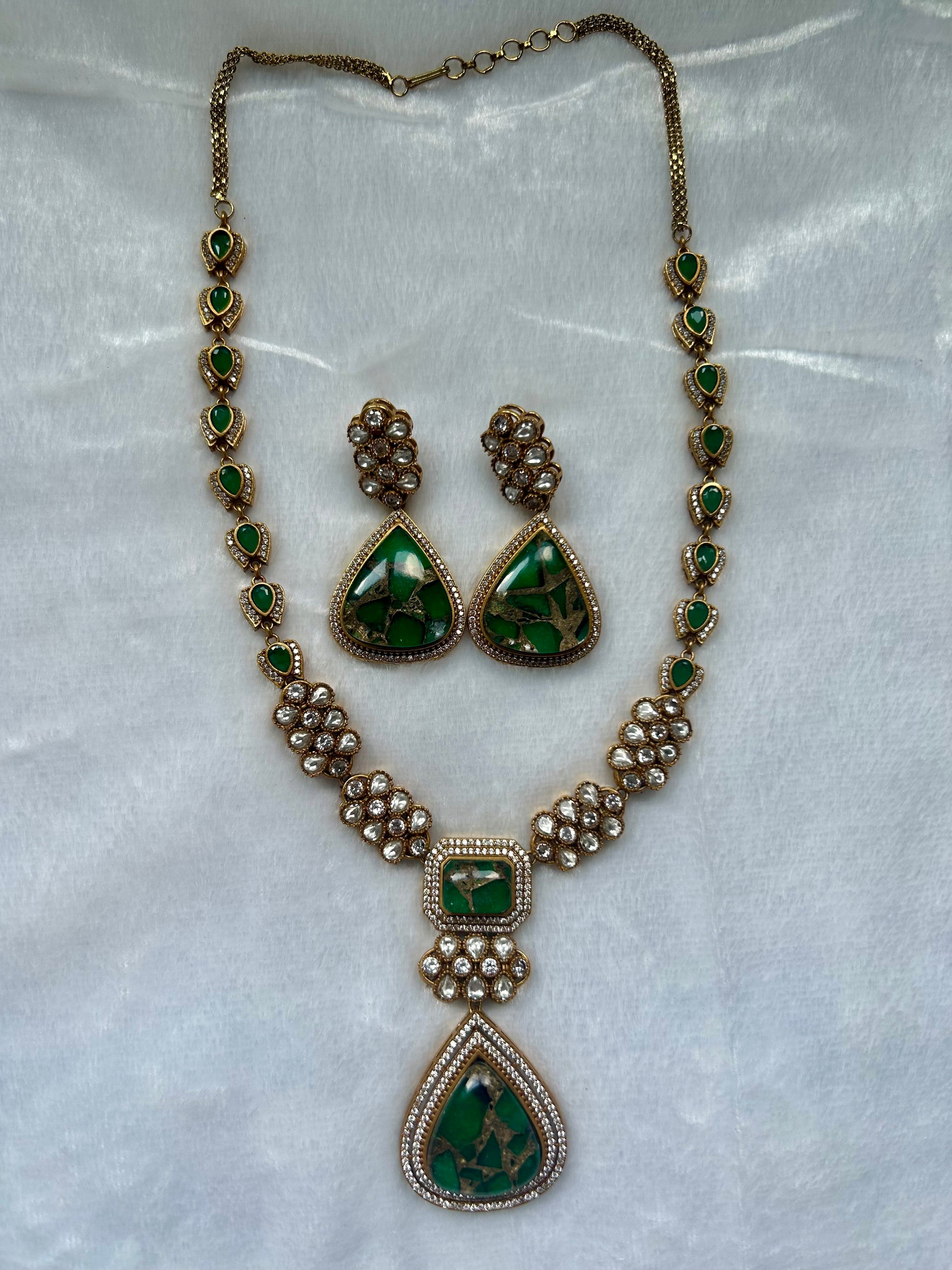 Green Moissanite Kundan Long Necklace Set