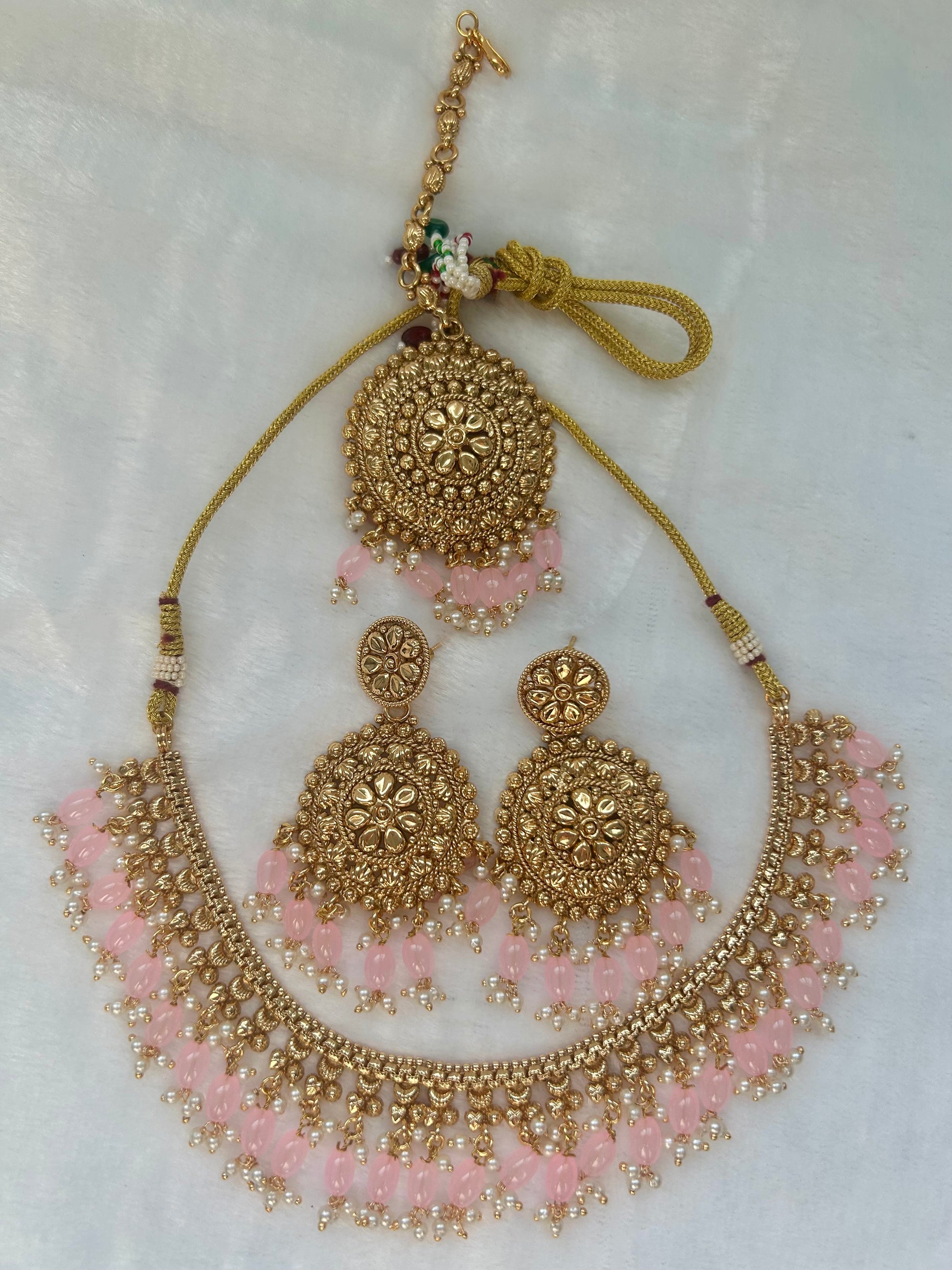 Package Content: 1 Pair Of Earrings x 1 Necklace c 1 Tikka