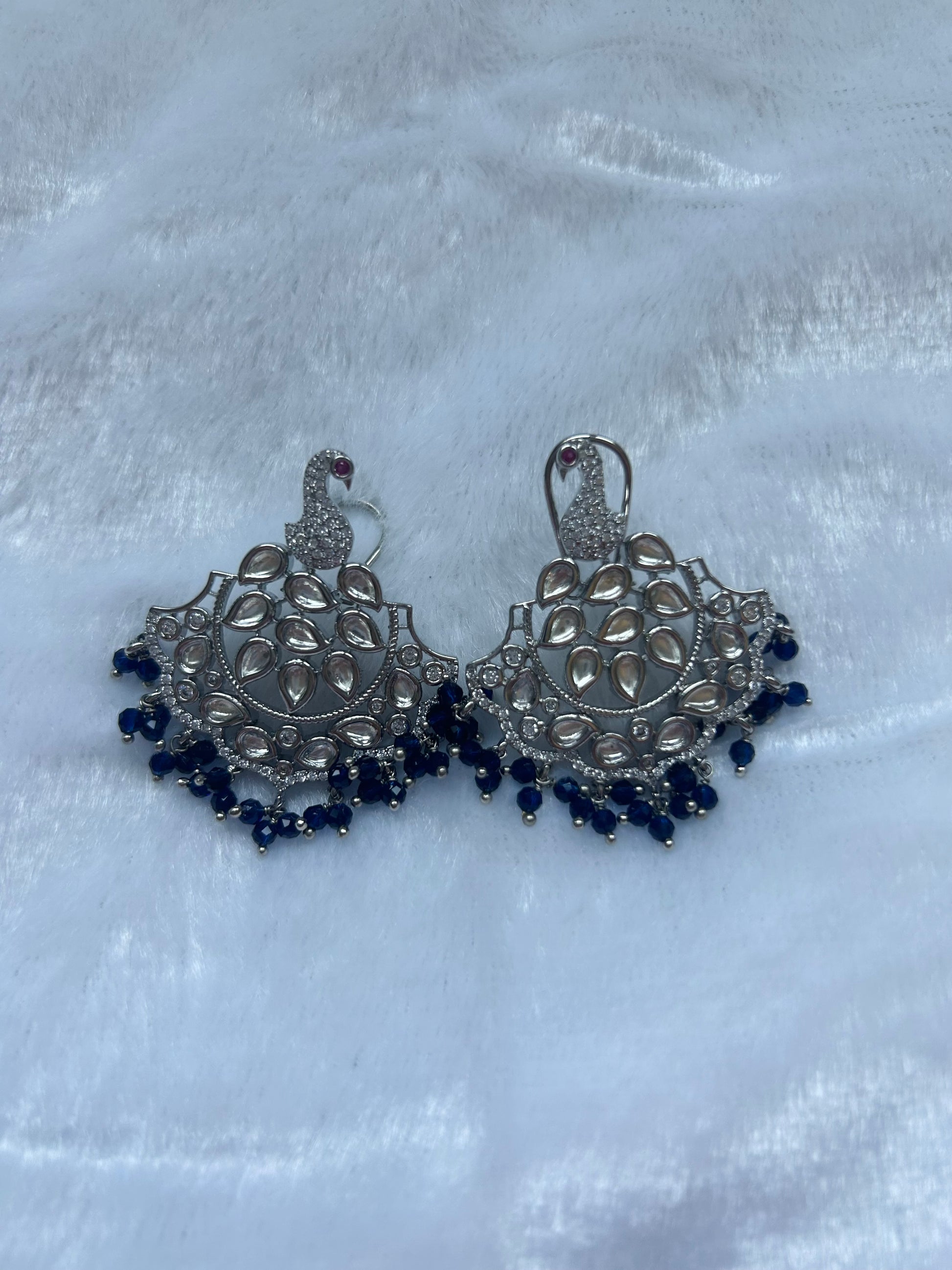 Dark Blue & Silver Uncut Kundan & AD Studs