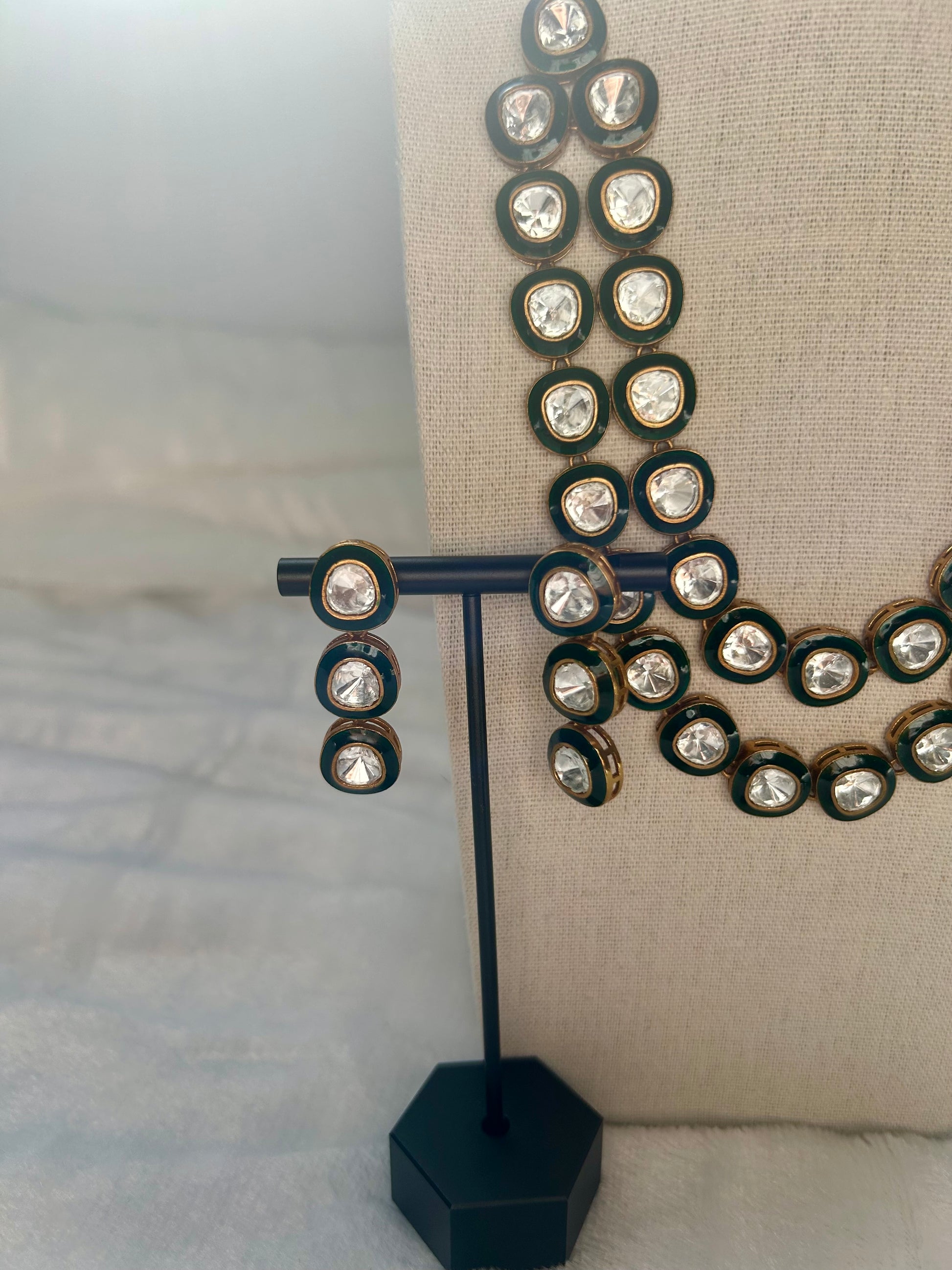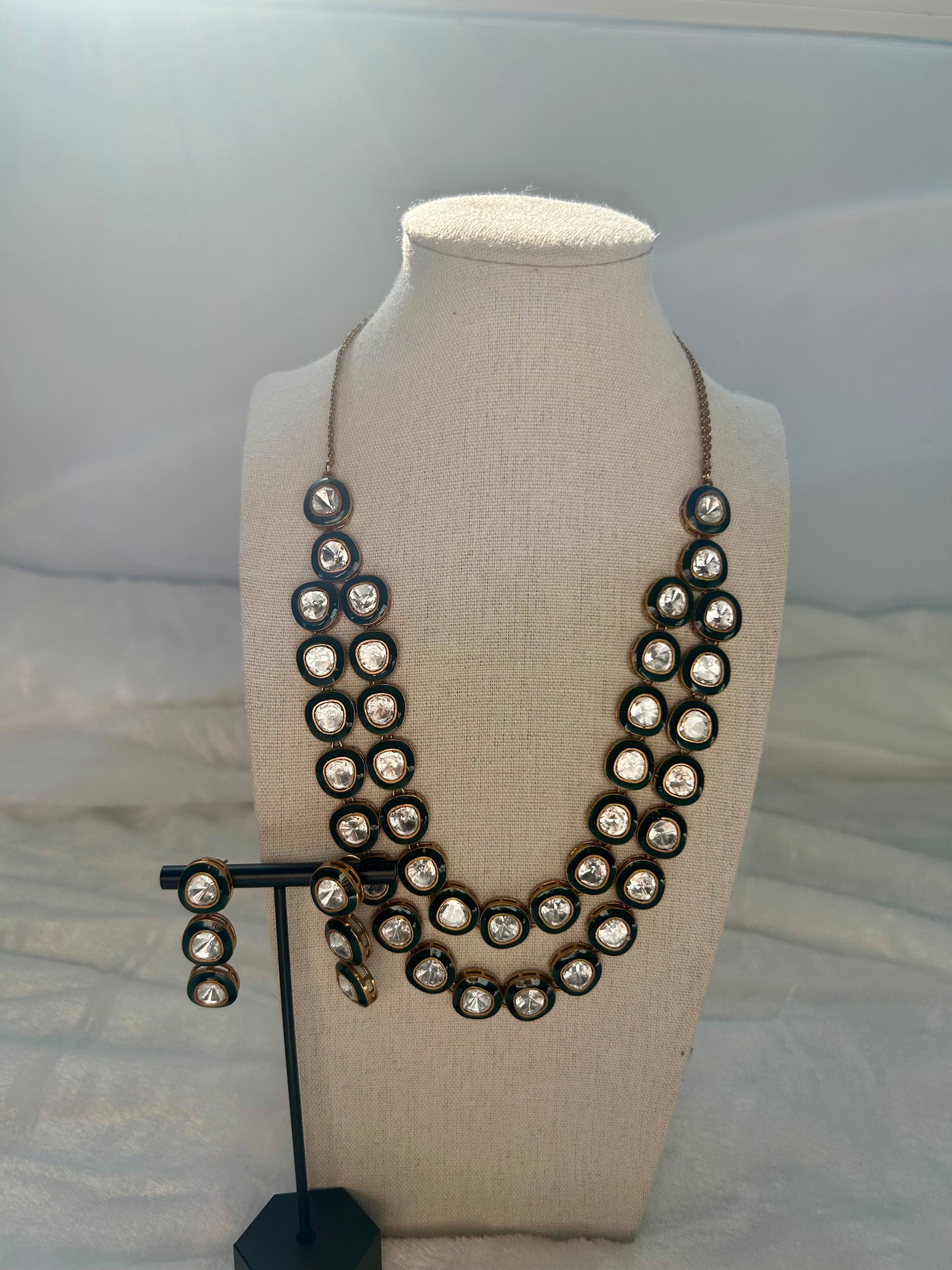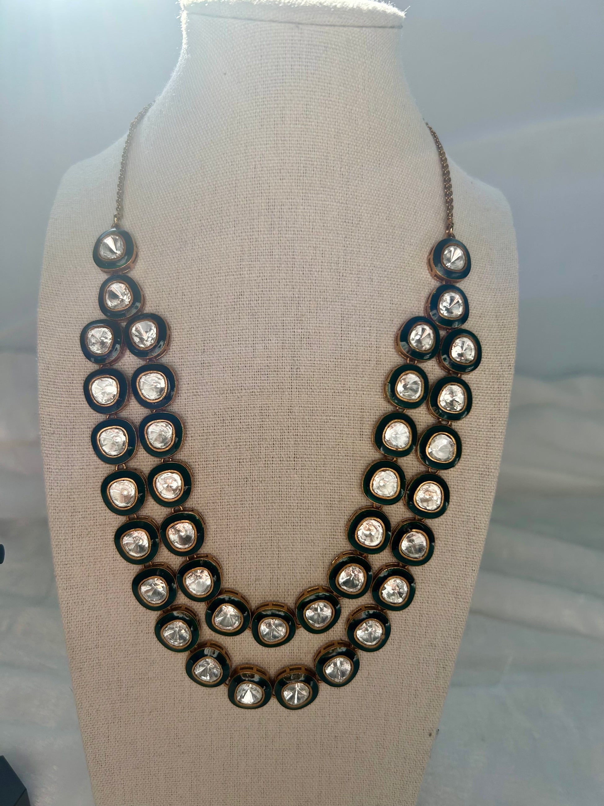 Uncut Kundan Emerald Green Layered Set